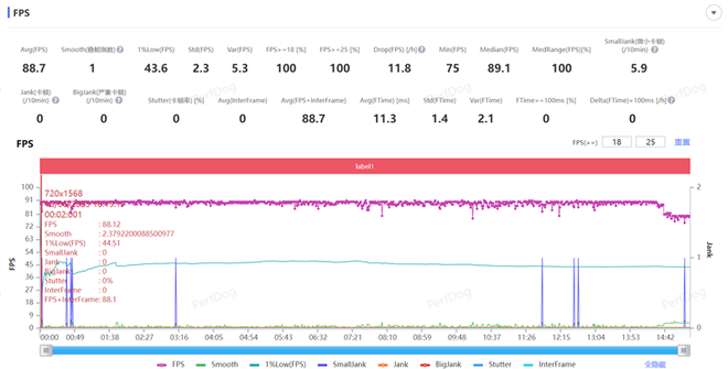 最终平均帧率没能实现满帧跑满,略有遗憾,但整体帧率表现仍处于流畅区间,对实际游戏体验影响有限,后续若能通过系统优化解决锁帧问题,游戏表现有望更上一层楼。