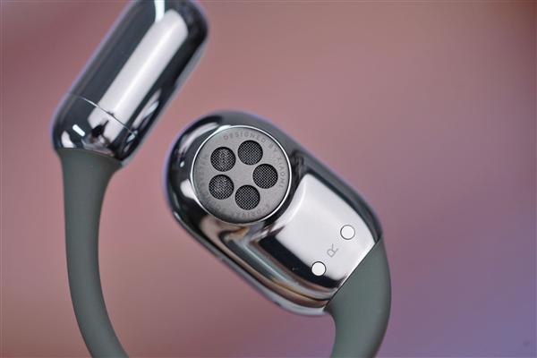 该耳机行业首发开放式耳机5单元系统,采用18*13mm定制大动圈式扬声器,震动面积大,低频性能较上代提升一倍,低音更浑厚有力。