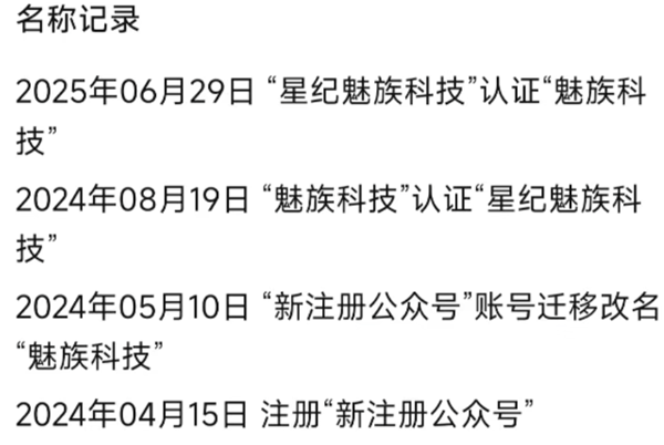 据了解,此前魅族的微信公众号从"星纪魅族科技"更改成了"魅族科技",这是继2024年8月"魅族科技"改为"星纪魅族科技"后的反向调整。