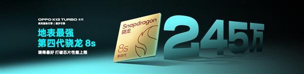 得益于这套出色的散热系统,OPPO K13 Turbo Pro将第四代骁龙8s的性能完美发挥出来,跑分达到245万。