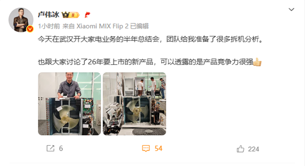 卢伟冰晒小米空调拆机:26年新品竞争力很强