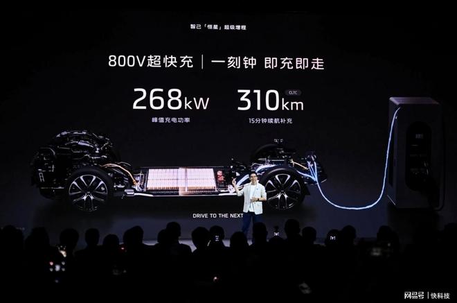 其次,恒星超级增程技术采用800V高压架构平台,而市面上在售的增程车普遍为400V,这就使得恒星超级增程的快充速度远超其他车型,15分钟补能310km,充电速度比肩一些品牌的旗舰车型。