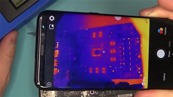 Tony使用热成像仪对电路板进行检测,发现GPU核心出现了短时间的高温爆发现象,同时显存测试显示有三颗显存芯片损坏。