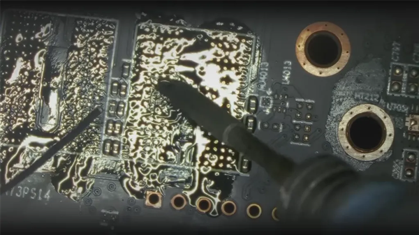 于是,他将显卡送到了Northwest Repairs进行检测,当维修团队打开显卡时,发现整个电路板上都是焊锡膏残留物,显然之前有人尝试过进行重新焊接,但操作极其失败。
