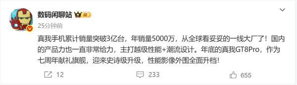 真我七周年献礼!博主曝真我GT8 Pro迎来史诗级升级