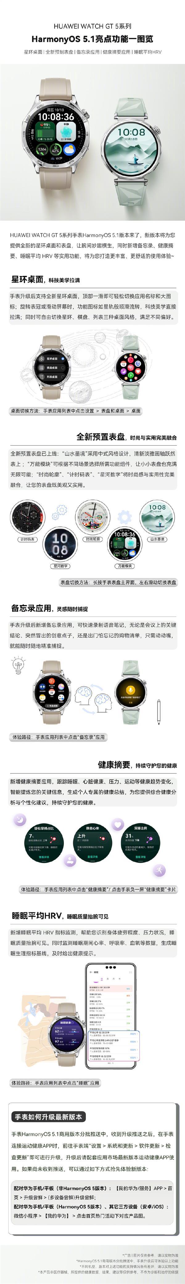 一图了解华为WATCH GT 5系列鸿蒙5.1升级:新增星环桌面、健康摘要