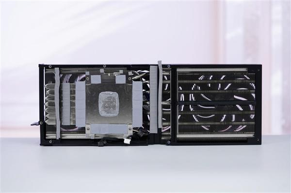 散热系统还采用了九热管(9*6mm)、VC均热板和大面积散热鳍片的组合。九根热管能够快速将热量从GPU传导出去,VC均热板进一步均匀热量分布,大面积散热鳍片则增加了散热面积,确保显卡在高负载运行时也能保持较低的温度。