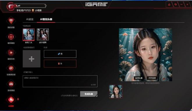 AI桌宠"柒小希"是自在星球最大的亮点,同时也是iGame的虚拟代言人。