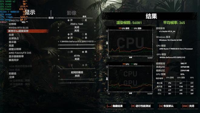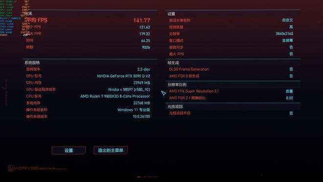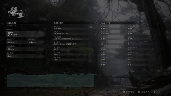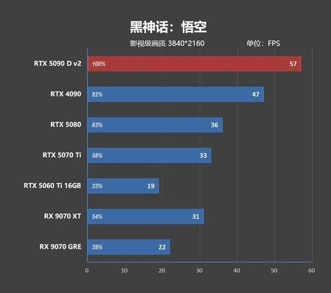 4K分辨率最高画质下,RTX 5090 D v2帧率为57FPS。