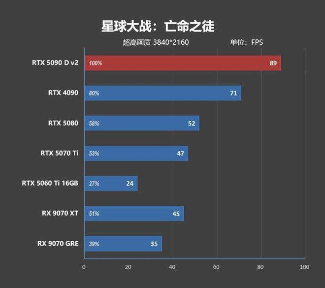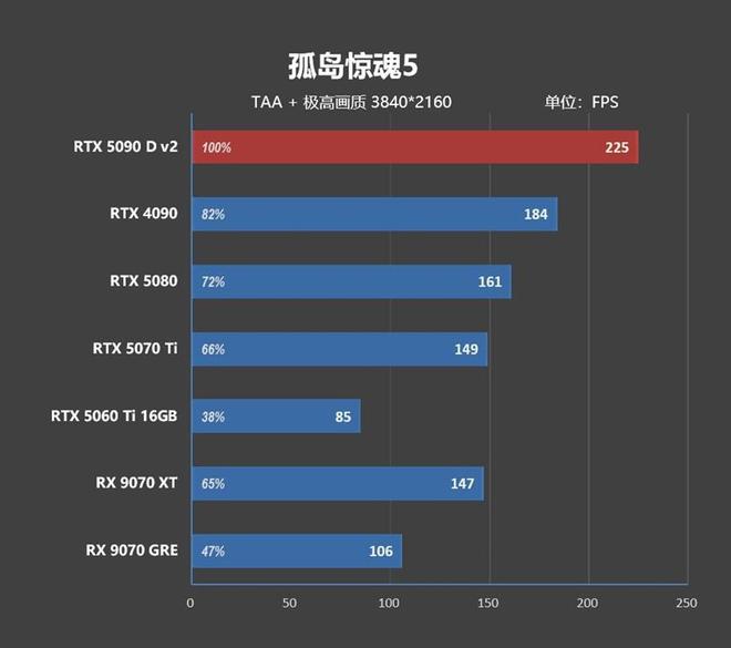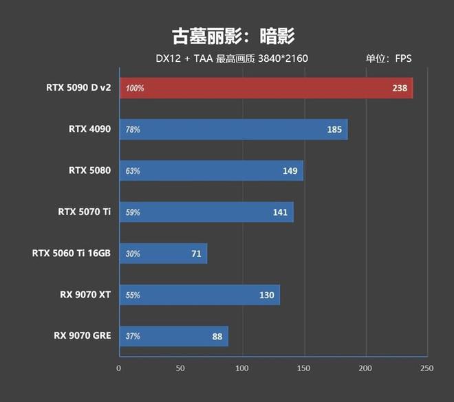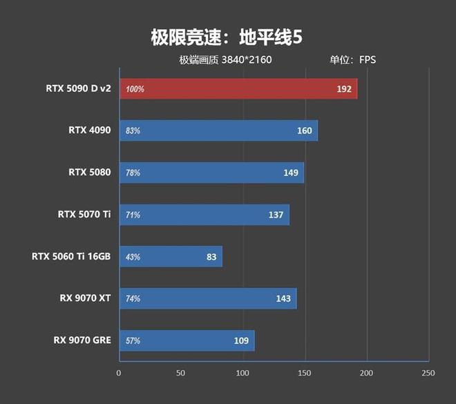 到了4K分辨率,RTX 5090D才发挥出真正实力,比RTX 4090强了26%,比RTX 5080快了50%。