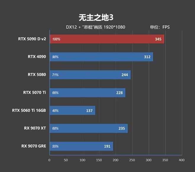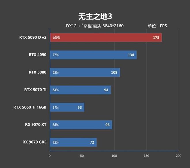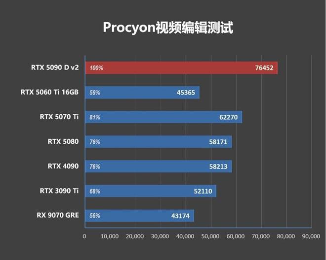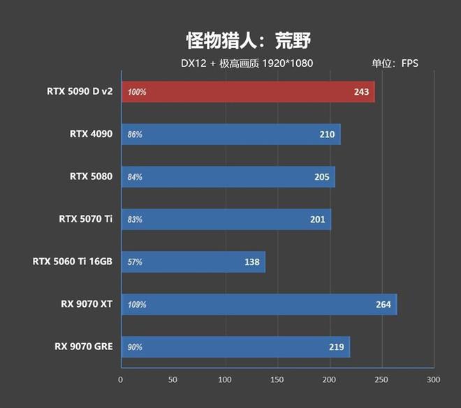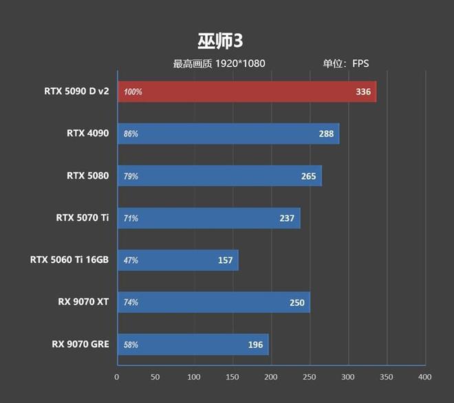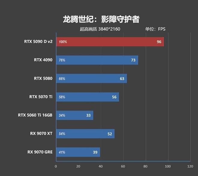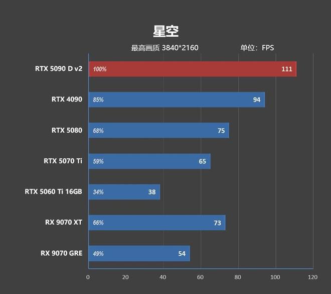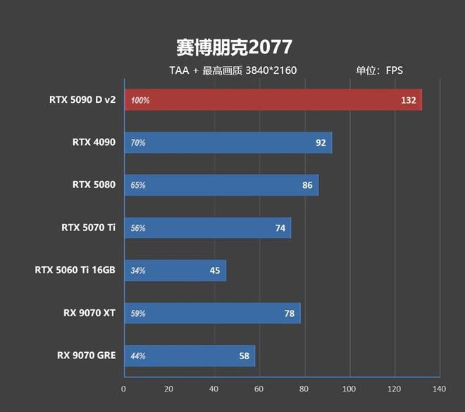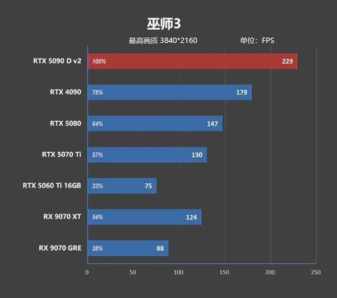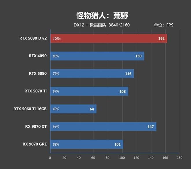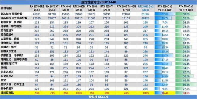 至于RTX 5080,RTX 5090 D v2对其拥有巨大的性能优势,1080P、2K、4K分辨率下分别能领先21%、33%和50%。