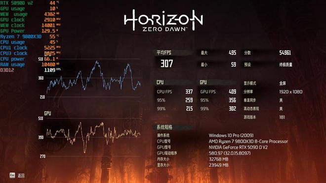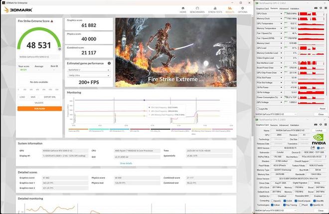 实测超频之后游戏帧率可以提升7~8%,此时的性能已经超越了RTX 5090 D。