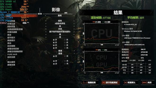 虽然被迫阉割了显存让玩家很伤心,但通过实际测试我们发现显存对游戏帧率的影响并没有那么大,RTX 5090 D v2的性能超出了我们的预期!