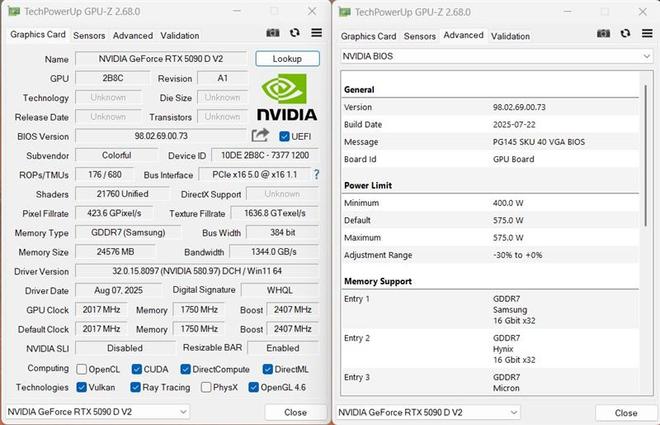 iGame GeForce RTX 5090 D v2 Vulcan OC 24GB GPU-Z截图
