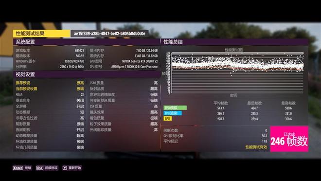 打开DLSS 4多帧生成之后,帧率暴涨到了244FPS,提升幅度超过770%。
