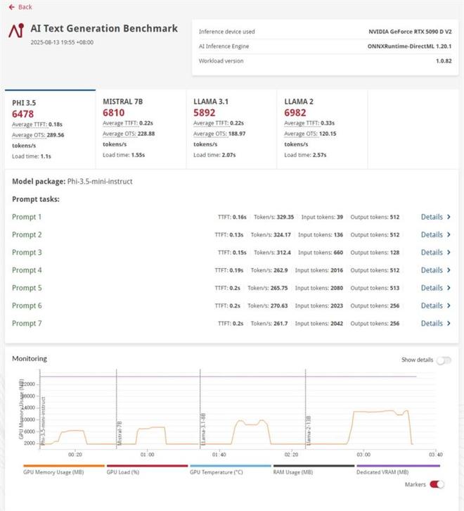 测试说明,本次参与对比的7块显卡都使用了新版本驱动程序重新测试了成绩,由于时间有限,RTX 5090 D依旧是首发测试的成绩,数据只做参考,不参与对比。