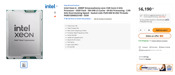 只剩原价一半!Intel旗舰至强6 6980P价格腰斩至6190美元史低