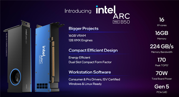 Intel专业显卡锐炫Pro B50正式发布!售价349美元