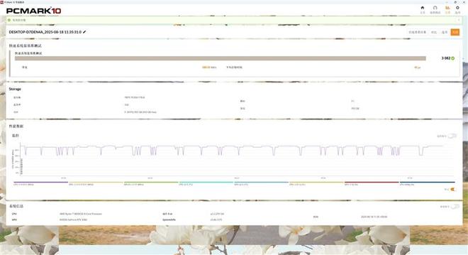 PCMark 10快速系统盘基准测试得分3082分,带宽380MB/s、平均存取时间42微秒。