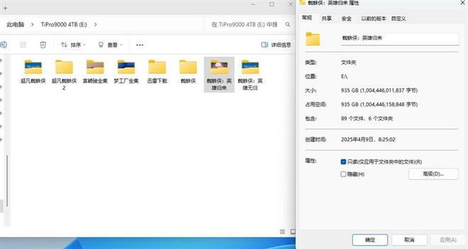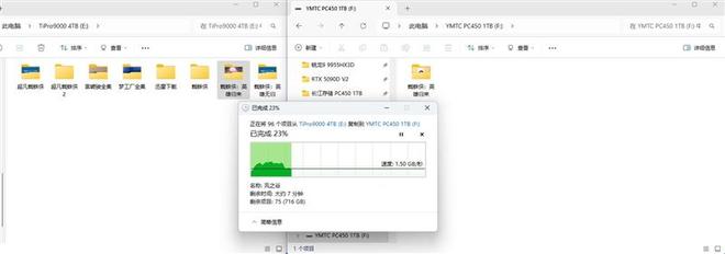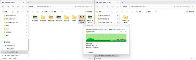 YMTC PC450 1TB实际容量954GB(二进制容量),我们从致态TiPro9000 4TB SSD一次性拷贝935GB的文件过来,尽可能用完这块SSD的可用空间。