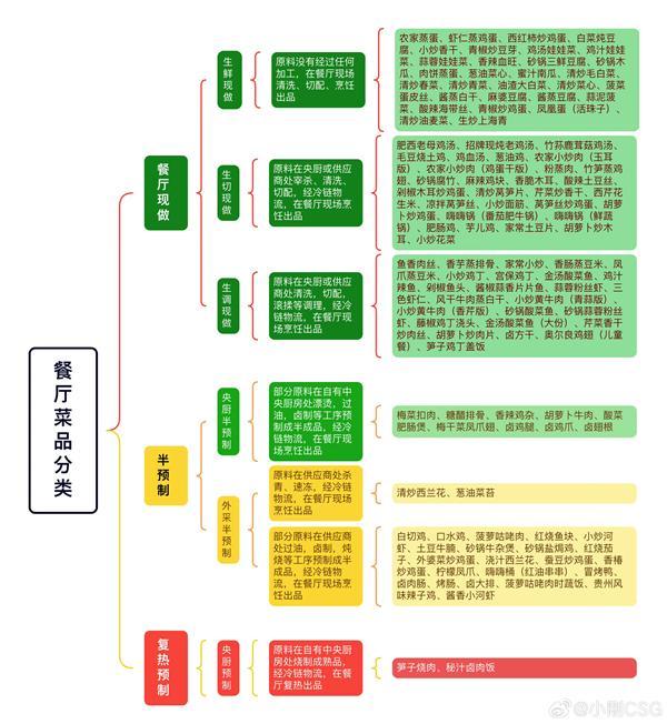 黄标"半预制":中央厨房预加工后门店二次烹饪(如梅菜扣肉、香辣鸡杂),占比27.7%;