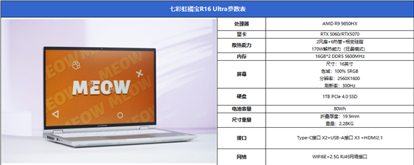 今天来到我们的,正是MEOW系列的的最新产品,MEOW 橘宝 R16 Ultra ,其搭载着移动端顶级性能的AMD R9 9850HX CPU。