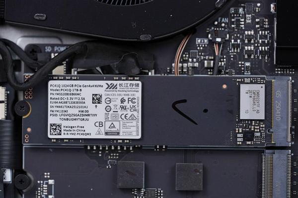 自带的硬盘品牌是长江存储,型号为PC41Q,拥有1T的空间容量以及PCIe 4.0X4的接口速率。