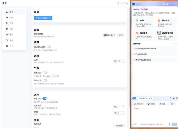 右侧为客户端界面,左侧是设置界面,可根据喜好自定义选项。