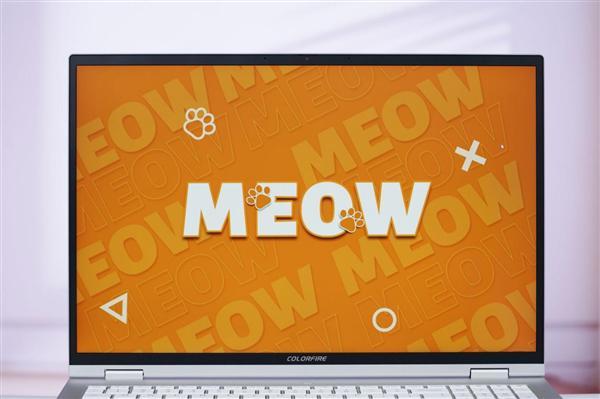 左上角是MEOW以及七彩虹的品牌英文,以及猫爪LOGO。