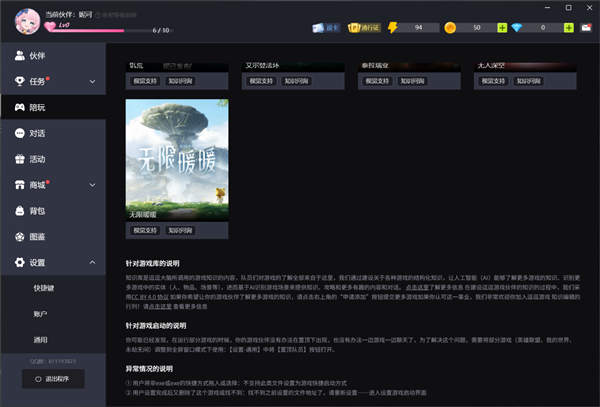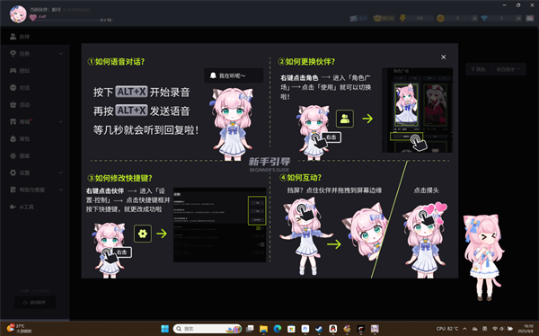 AI游戏助手:作为桌宠固定在屏幕上方,可以在商城中自由选择皮肤或角色。能聊天,能摸摸头。
