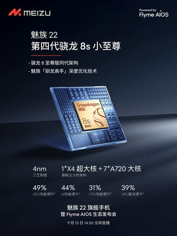 9月15日消息,魅族22延期两次之后,终于要在今天14:30正式发布。