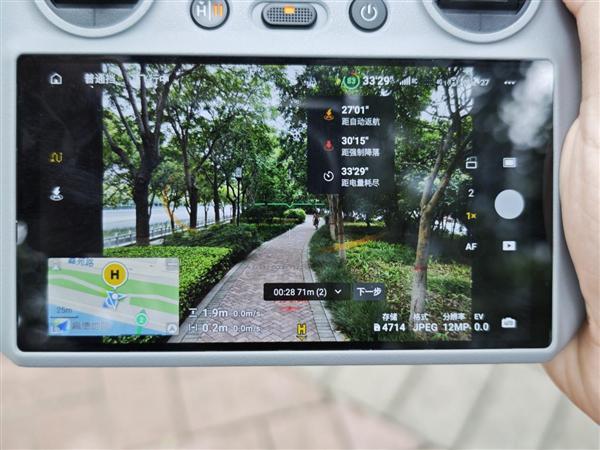 同时借此硬件,新一代的智能返航在城市中表现极佳,能够主动探测飞行和返航路上的障碍物,智能设定出一条最佳的返航路径。当然也可以设定成原始的飞到指定位置后下降的返航方式。在光线良好的状态下还能记忆飞行路线。同时在返回的途中会有AR轨迹以供参考。在返航路线出现问题时,还能够智能切换录像返航。