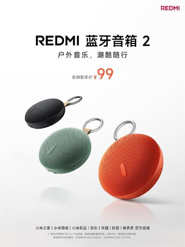 9月25日消息,今日,REDMI蓝牙音箱2发布,首销到手价99元。