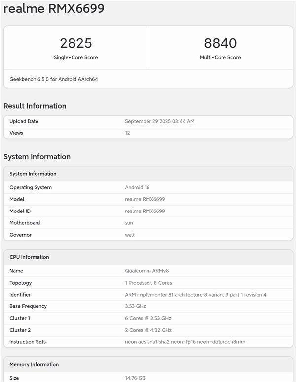 挑战最强标准版!真我GT8跑分出炉:骁龙8至尊版+16GB内存