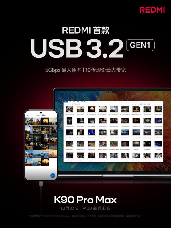 K90 Pro Max还做出了"违背祖训"的决定,是REDMI首款支持USB 3.2 Gen1的手机,支持5Gbps最大速率。
