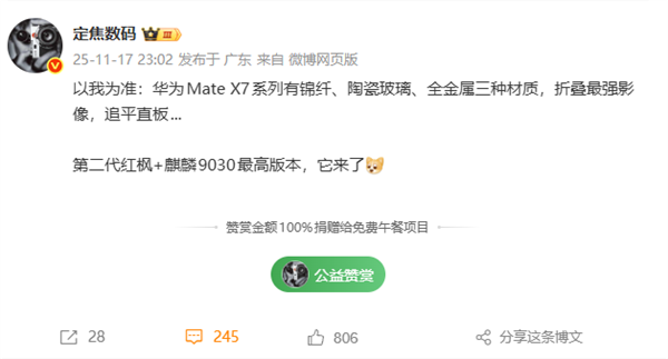 华为Mate X7 11月25日发布:满血麒麟9030 最强影像折叠屏