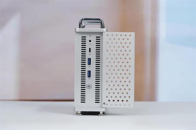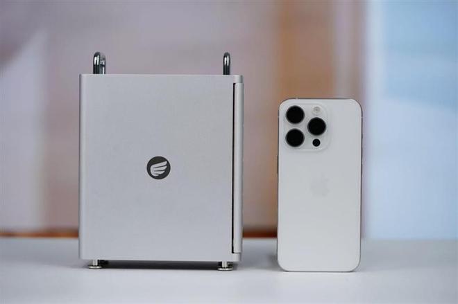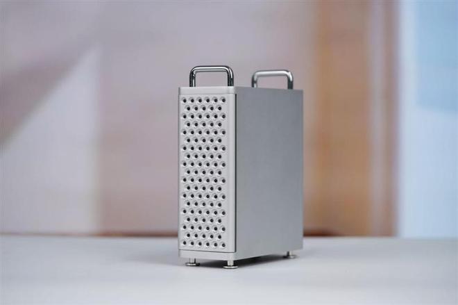OminiPro迷你主机致敬了苹果Mac Pro标志性"刨丝器"机箱设计,采用相同的铝合金材质,结合CNC加工、精细喷砂及阳极氧化工艺。
