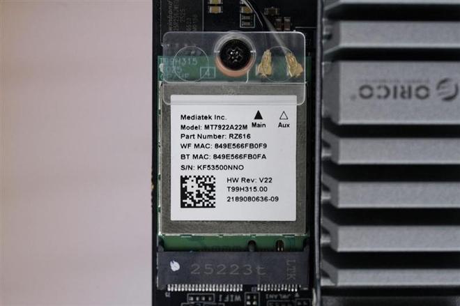 联发科MT7922 Wi-Fi 6E无线网卡,内置蓝牙5.2。