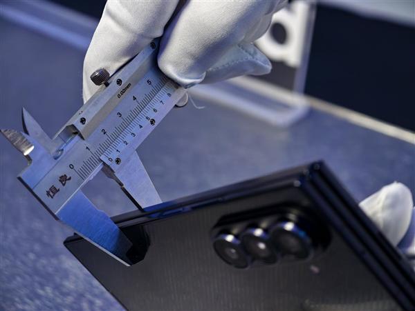 三星在材质上也是不吝成本,铰链盖采用钛金属,磨砂表面抗指纹;中框是增强型装甲铝,现场用钥匙轻划都看不到痕迹;背板则为陶瓷玻纤,官方称抗开裂能力比玻璃提升 300%,按压也没有形变。