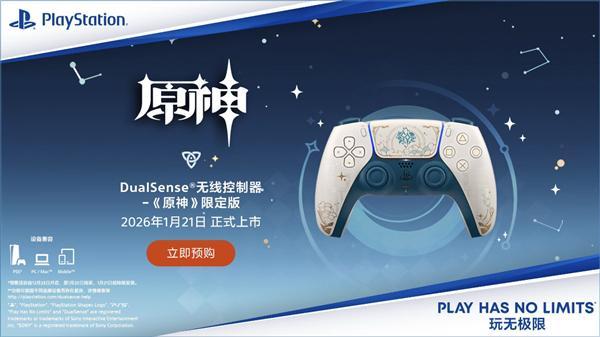 12月19日消息,今日,索尼宣布,DualSense无线控制器《原神》限定版将于2026年1月21日在中国大陆上市,建议零售价639元,12月23日开启预售。