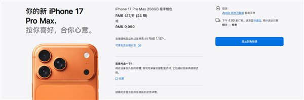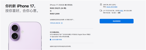 iPhone 17系列交货时间大幅优化,标准版与Pro版实现国内当天快速到手服务