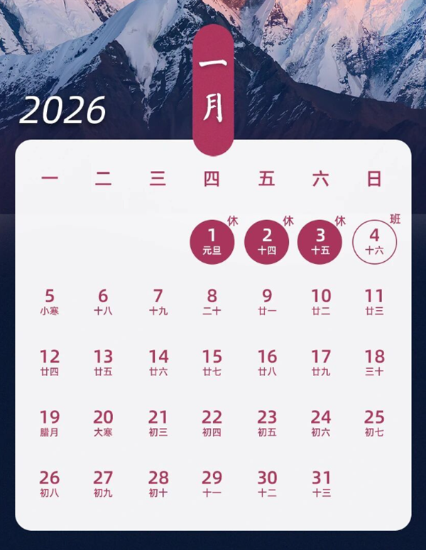 12月29日消息,再过2天,2026年元旦假期就要来了。