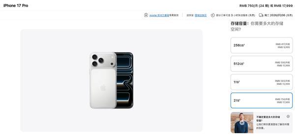 据悉,2TB扩容的价格在2500元左右,而苹果官网iPhone 17 Pro Max 256GB和2TB的差价高达8000元(256GB版定价是9999元,2TB版定价是17999元),算下来扩容能节省大约5500元。