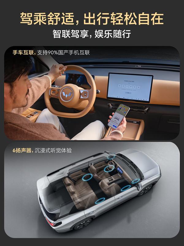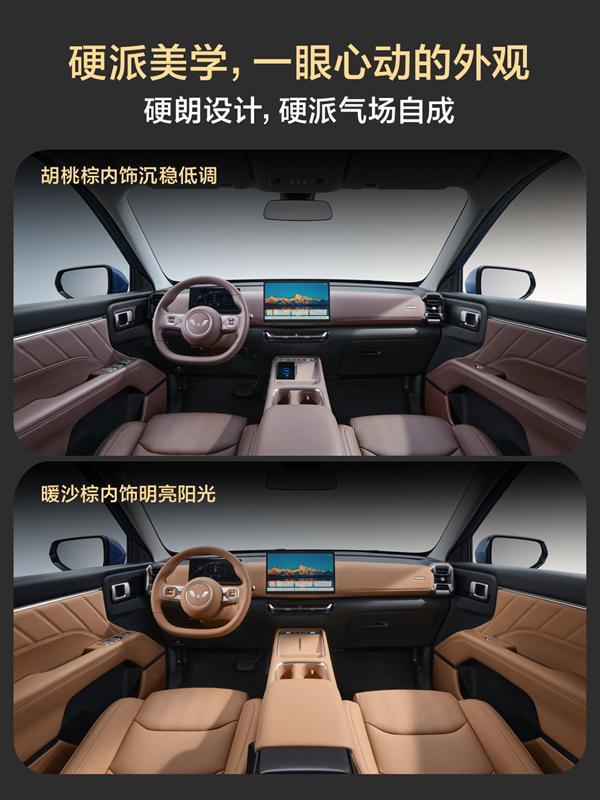 进入车内,新车依旧延续五菱星光的家族式设计风格,前排采用环抱式座舱,提供暖沙棕和胡桃棕两种配色。