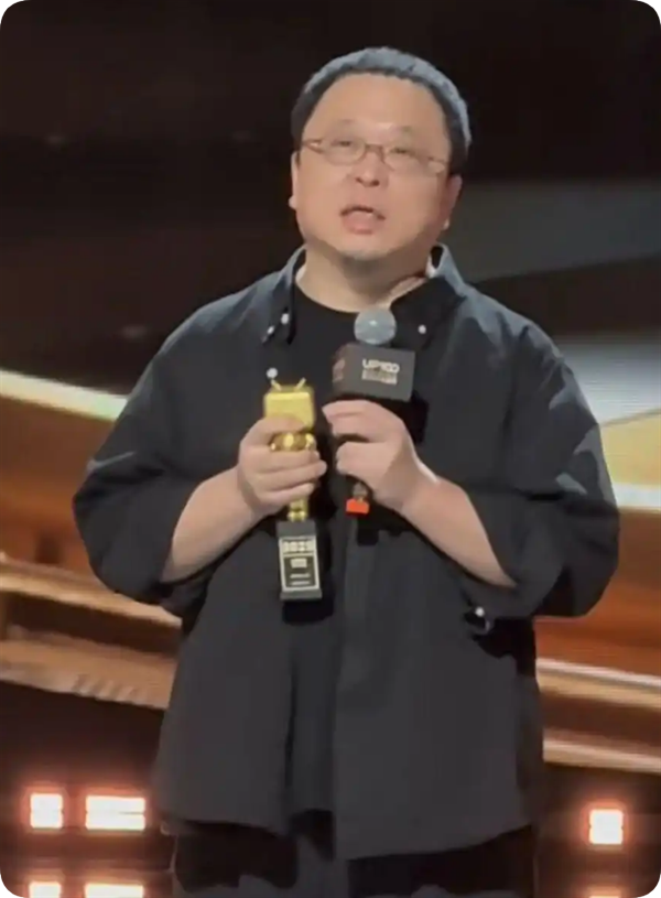 颁奖现场还出现了趣味小插曲:当罗永浩领取"百大新人奖"时,颁发的小金人道具头部竟意外脱落,主持人只能赶紧从地上捡起,让罗永浩暂时用手帮助固定一下。