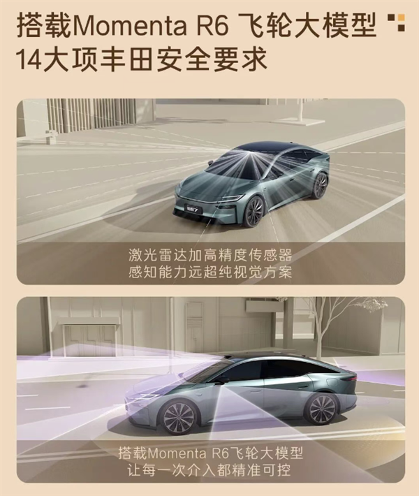 该车最大的亮点就在于由丰田中国工程师团队主导研发,最大的亮点在于集合了中国多家科技公司的卖点,配备华为电驱、鸿蒙座舱,接入小米生态,应用Momenta R6飞轮大模型辅助驾驶。