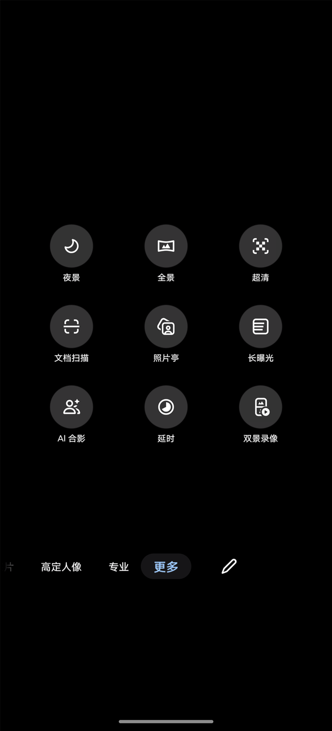 在最后的更多中,还有大量的预设拍摄方案,对于用户来说都是十分实用的功能,极大的简化了拍摄难度,普通人也能拍摄延时或长曝光等高级效果。