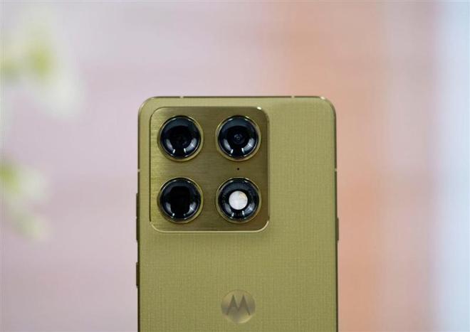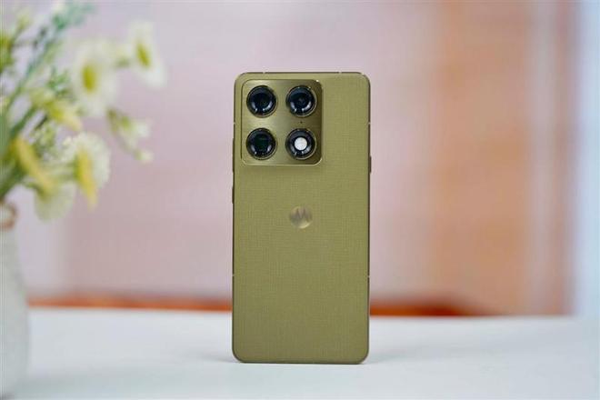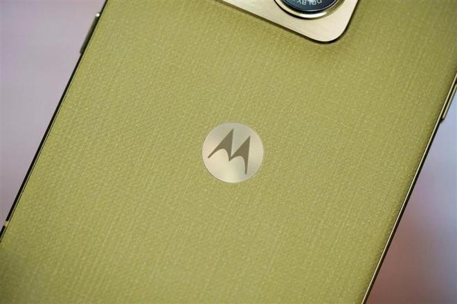 联想moto X70 Air Pro背部中央的moto Logo,可以看到双层织物纹理的层次感极为丰富,同时也带来了十分独特的触摸质感,防滑效果一流,握持极为稳固。