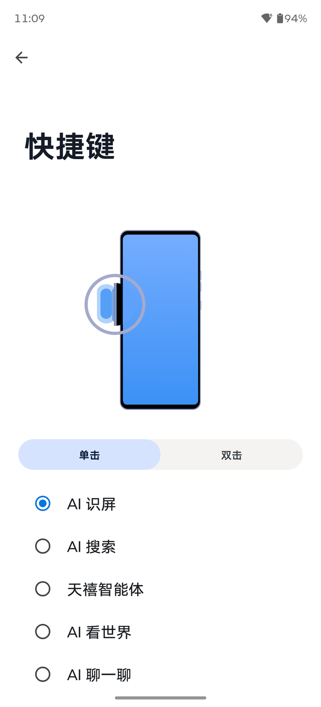 另外联想moto X70 Air Pro在机身左侧提供了一枚额外的AI直达键,长按就可以呼出AI直达键的设置,默认单击启动AI识屏,双击启用AI搜索,用户也可以进行修改。