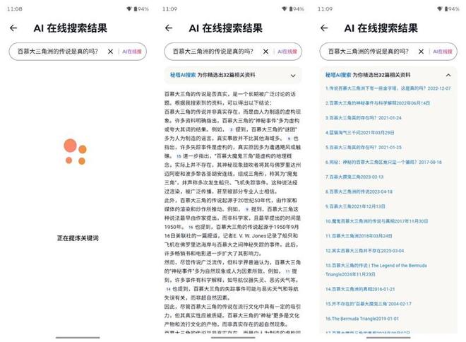 除了长按AI键呼出AI搜索之外,在联想moto X70 Air Pro桌面空白处下滑,也可以直接呼出AI搜索,我们测试向AI搜索以自然语言提问,都得到了非常完善的回答,而且还给出了详细的引用出处,也方便用户进一步检索相关信息。